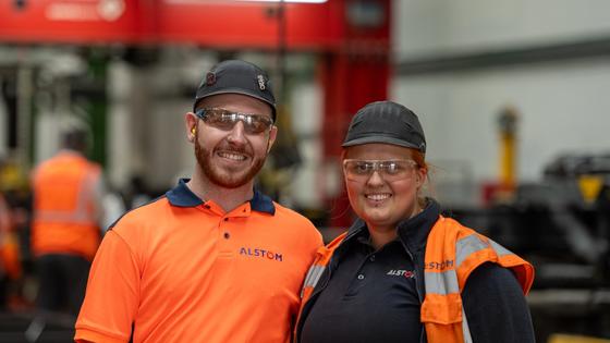 Elsewhere, partners Adam and Casey, who have a combined service of 17 years, work on a bogie production line for another fleet of trains. Adam is responsible for inspecting the assembled bogies. Casey, who works on the bogie final assembly section as a Team Leader, began an Apprenticeship with Alstom in 2017 – following in the footsteps of her grandad.