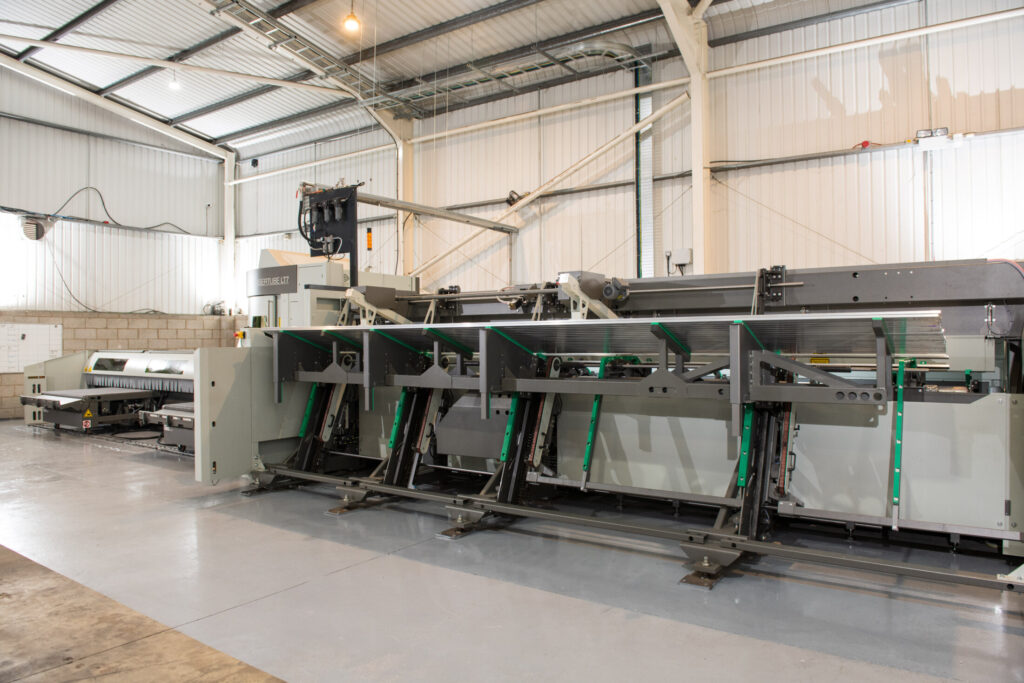 The fully automated laser cutter also requires fewer operators, which has helped to further reduce running costs. Materials are loaded into the machine in bulk. The machine is then fed with materials automatically into the laser cutter. The operator takes the finished cut item off the conveyer and loads into stillages.