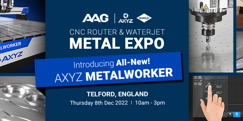 AAG is delighted to announce its next Telford Expo event, taking place on Thursday 8th of December at the UK head office. This one day event will showcase for the first time in the UK, the AXYZ METALWORKER CNC Router, specifically engineered for high precision part production in nested-based CNC operations. The METALWORKER was designed exclusively for end users looking to process small to large-sized sheets of material including aluminium, copper, zinc, metal composite and more. The METALWORKER is the ideal machine for metal fabricators who require a top of the range CNC router, designed to maximise quality, speed and precision, unattainable with many other machines. Operators will benefit from standard features that include high performance servo motors and helical drive systems, an industrial 22” touch screen that powers AAG MOVE™ CNC control software and more.