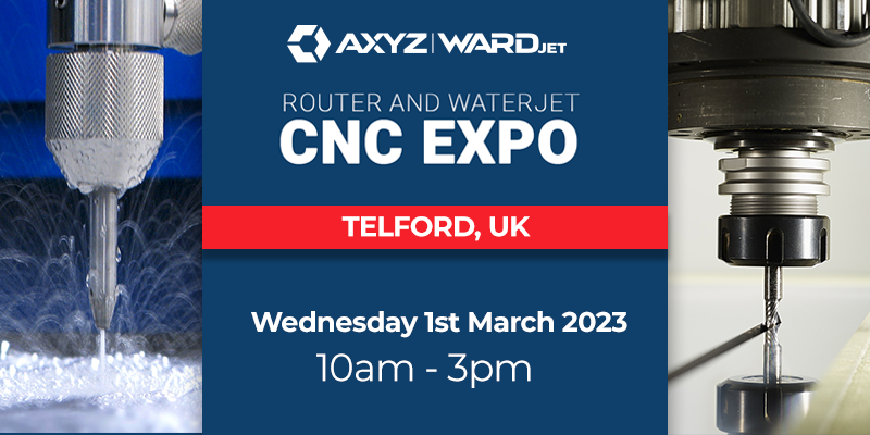 Industry leader in cutting and routing systems, AXYZ routers and WARDJET waterjets are delighted to announce the next Telford Expo event at the UK Headquarters, taking place on Wednesday 1st March. This one day event will showcase the AXYZ and WARDJET portfolio of machines, an event filled with live CNC Router and Waterjet application demonstrations and training. Visitors will be able to tour the Router and Waterjet demonstration areas to see these incredible machines in action!