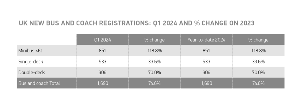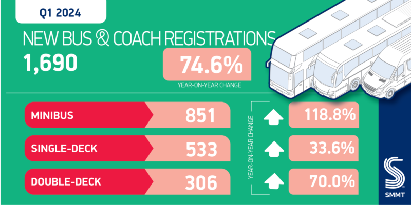 - UK’s rollout of new buses, coaches and minibuses accelerates in first quarter, surging 74.6%.