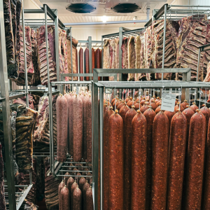 MPL Fabrications designed and manufactured mobile stainless-steel trolleys featuring hanging points and rods, specifically engineered for Cobble Lane’s curing process. These trolleys are essential for both the efficient display and transportation of products, ensuring that the meats are handled with care throughout the production cycle.
