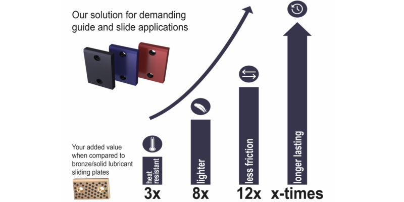 In addition to significantly improving product lifespan and reducing maintenance costs, DAYComp enables energy savings during operation due to its lighter weight. Production on the European mainland further contributes to CO2 reduction and supports companies in achieving their ESG goals. Moreover, DAYComp sliding plates are suitable as sliding partners for unhardened steel or cast iron, enabling further cost savings.