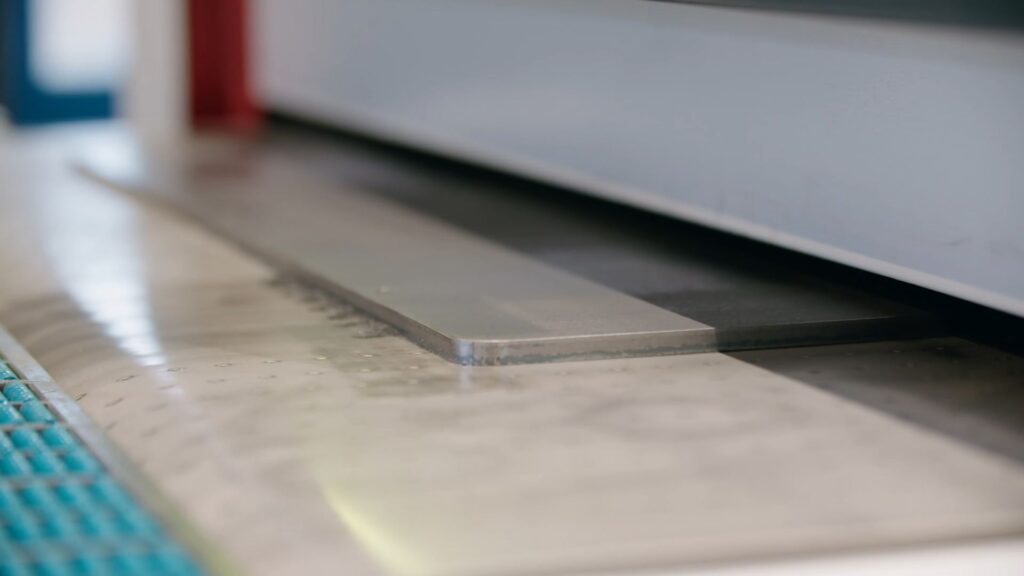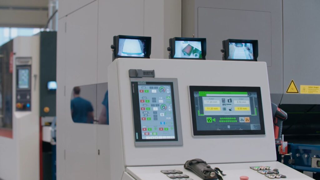 To save space, Suer wanted to link the part levelling machine to the deburring machine. This way, it forms one process. The control panels of the KOHLER and Timesavers machine are integrated into one system, with three cameras on top. This allows one employee to manage and oversee the entire process. “It saves time, space and energy. And it works very well,” says Leonard. KOHLER’s part levelling machine ensures flat and low-stress sheet metal. Max Burgert, product manager at KOHLER, explains that levelling involves more than just straightening a sheet. By reducing and balancing the tension in the material, further work becomes more process reliable and efficient. Next, the levelled part passes over the roller table into the deburring machine. There, deburring, edge rounding, oxide removal and finishing take place. At the push of a button, the conveyor belt reverses again. This way, the part is fed back to the front.