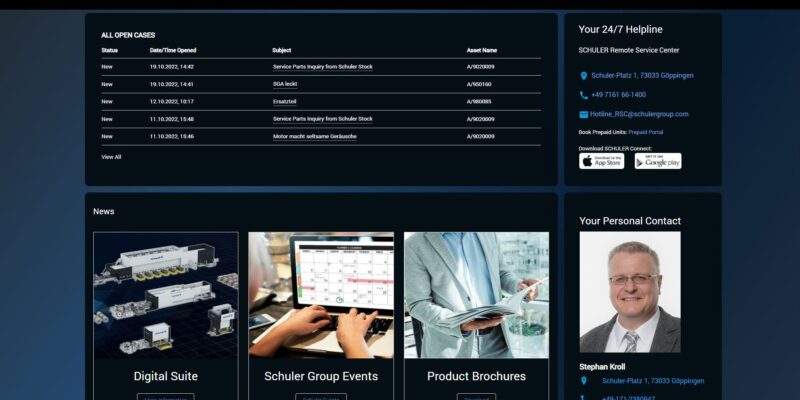 Schuler now offers its customers a web-based overview of their equipment, current contracts, hotline cases, and spare parts in stock.