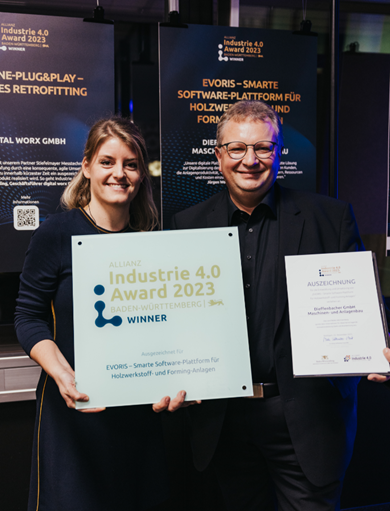 On November 22, at the STARTUP THE FUTURE event in Stuttgart, DIEFFENBACHER received the “Allianz Industry 4.0 Award 2023” in the “Winner” category for its AI-supported digitalisation solution EVORIS. The award honours innovative, powerful and market-relevant solutions in the field of digitalisation.