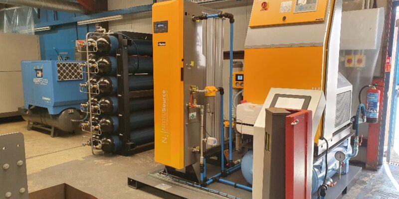 Fans & Blowers in Highbridge, Somerset have recently added a new MSS Nitroskid high-pressure nitrogen generation system to their laser cutting operation. Having used bundled gas cylinders to supply their fibre laser for years, Fans and Blowers decided that they needed to improve the reliability of their high pressure nitrogen supply.