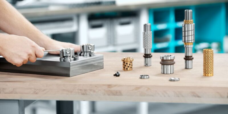 The fitting dimensions of the guiding elements are perfectly coordinated to the standardised die sets from Meusburger. This guarantees consistent standardisation of the die sets.