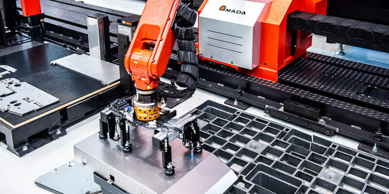 With its new Blank-to-Bend concept, AMADA links together punching and combination systems with robotic press brakes via a rack storage system – to form a highly- automated end-to-end solution.