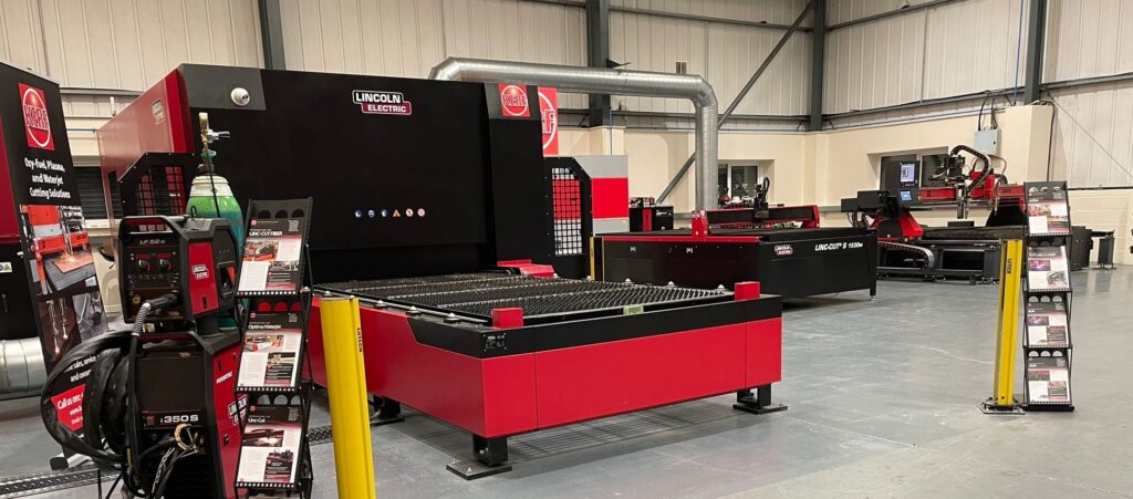 The facility’s four new machines permanently sited include the exciting new LINC-CUT FIBER 1530A Fiber Laser system, an Optima 420 waterjet system, the Kerf Ultra Oxy-Fuel machine and the Ultrasharp plasma machine. Introduced to the UK at MACH 2024, the Lincoln Electric LINC-CUT FIBER 1530A Fiber Laser system has linear guidance, dynamic kinematics, helical drives, and rigidity and precision, the industry’s benchmark. The LINC-CUT FIBER 1530A is available as a 3kW, 6kW or 12kw machine with a 2m by 1m, 3m by 1.5m or 4m by 2m bed. It incorporates state-of-the-art features such as Flycut, Fast-Cutting, Smooth Microjoint, Frame Border, Circle Centring and Collision Avoidance that will all enhance productivity and cutting speed for the end user.