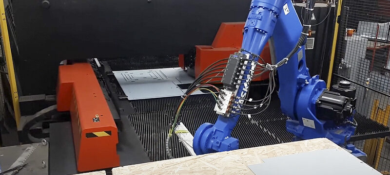 Manufacturing automation used to be about producing large volumes of goods with little ability to change and adapt part mixes and volumes. In sheet metal manufacturing, automation often still requires manual labour to separate parts from nests in sheets, especially if the parts are too small, too large or too complex for standard part pickers. That is changing now. We have developed a robot system that can be used to pick parts out of a CNC punch press or laser and stack them on a table, shelves or in bins, according to customer requirements. The system is programmed offline and offers the reliability and accuracy of modern robotics, the ease of use and power of CAD/CAM programming and the flexibility to be adapted to the user’s needs. It is tailored to the user’s requirements in terms of floor space, component type and part stacking. Individual parts are often too large or too small or too complex to pick out using conventional OEM picking systems, and the systems themselves are large and expensive and not suitable for many workshops.