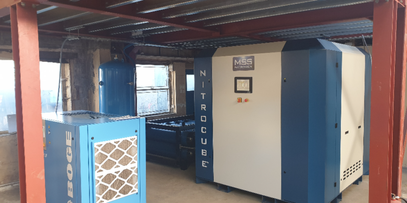 Structural & Architectural steelwork specialists MJ Allen Metalwork have recently taken delivery of a new MSS Nitrocube 2 high pressure nitrogen generation system at their new site in Kent. The Nitrocube system is to be used to provide onsite nitrogen generation to supply MJ Allens high performance 4kW Fiber Laser cutting system.