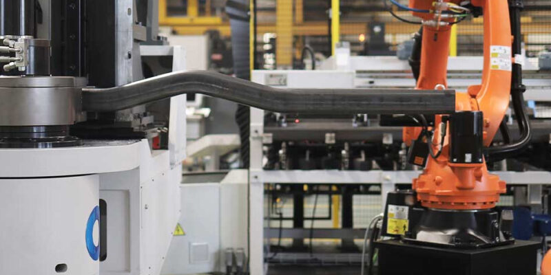 At the heart of the system is the eMOB 150 fully electric tube bending machine, integrated with two high-capacity industrial robots and an automated bundle loader. This advanced setup sets a new benchmark for precision, efficiency, and adaptability in modern manufacturing.