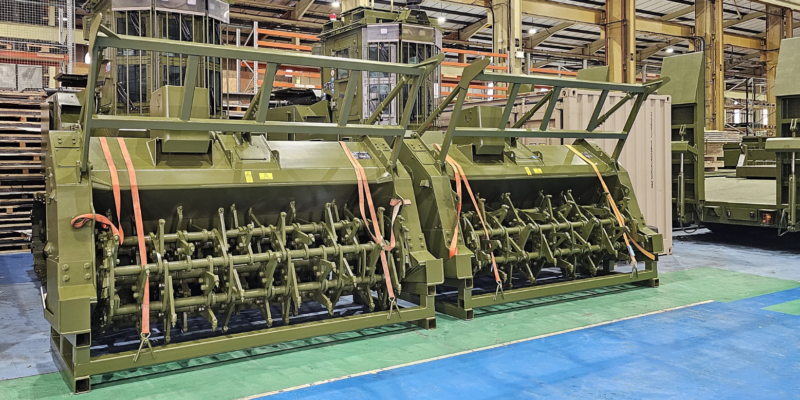 The vehicle interfaces will allow Ukraine’s armoured vehicle fleet to not only use mine ploughs to clear safe routes, but also to accept a wide range of other types of ground engaging equipment, should it be needed, to defeat other types of natural and deliberate obstacles.