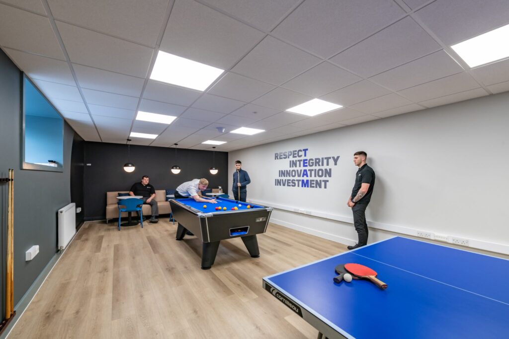 - Breakout Area: Recognising the importance of relaxation and informal meetings, there is a stylish breakout area where employees can enjoy a game of pool, table tennis, unwind or have informal discussions. This space was designed to be both functional and comfortable, promoting creativity and wellbeing.