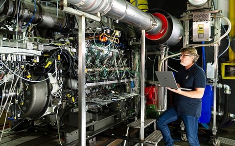 Due to the different combustion behaviour of hydrogen compared to natural gas, some engine components including fuel injection, turbocharging, piston design and control, were modified in the test engine. However, by using proven technologies within the Power Systems’ portfolio, such as mtu turbochargers, injection valves, and engine electronics and control, the development of the engine to use hydrogen was advanced quickly and efficiently.