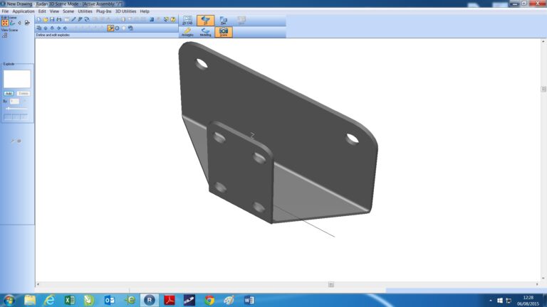This particular bracket is bent in two places before the bushes are inserted the press break is equally capable of working out a blank size but the use of CAD models provides all the back ground information and reference material whilst all details are in the correct position first time.